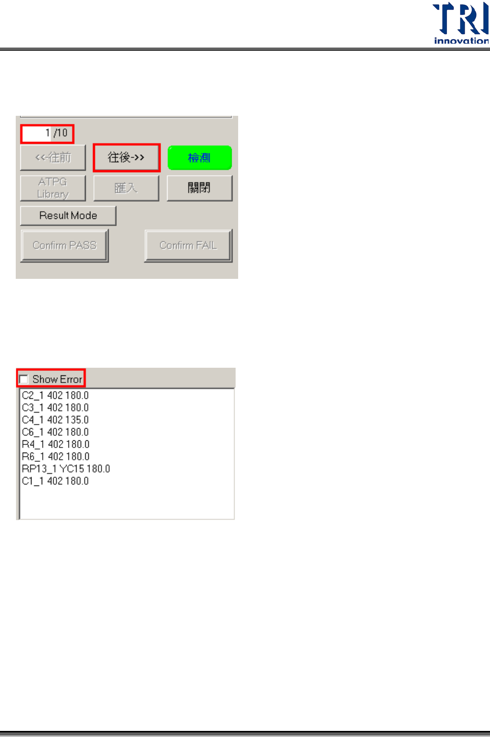 5. 元件列表區點選[Show Error]時,可將該 FOV 所檢測錯誤的元件名稱顯示出來供