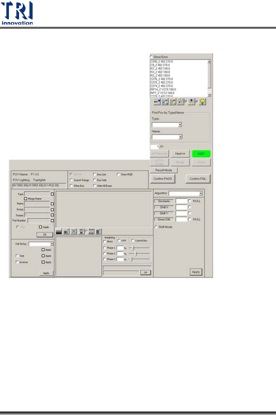 Test Research Inc. TR 7700 S II DL Us er Gui de – Software 53 6. 使用者可使用下列工具對 FOV 進行微調。