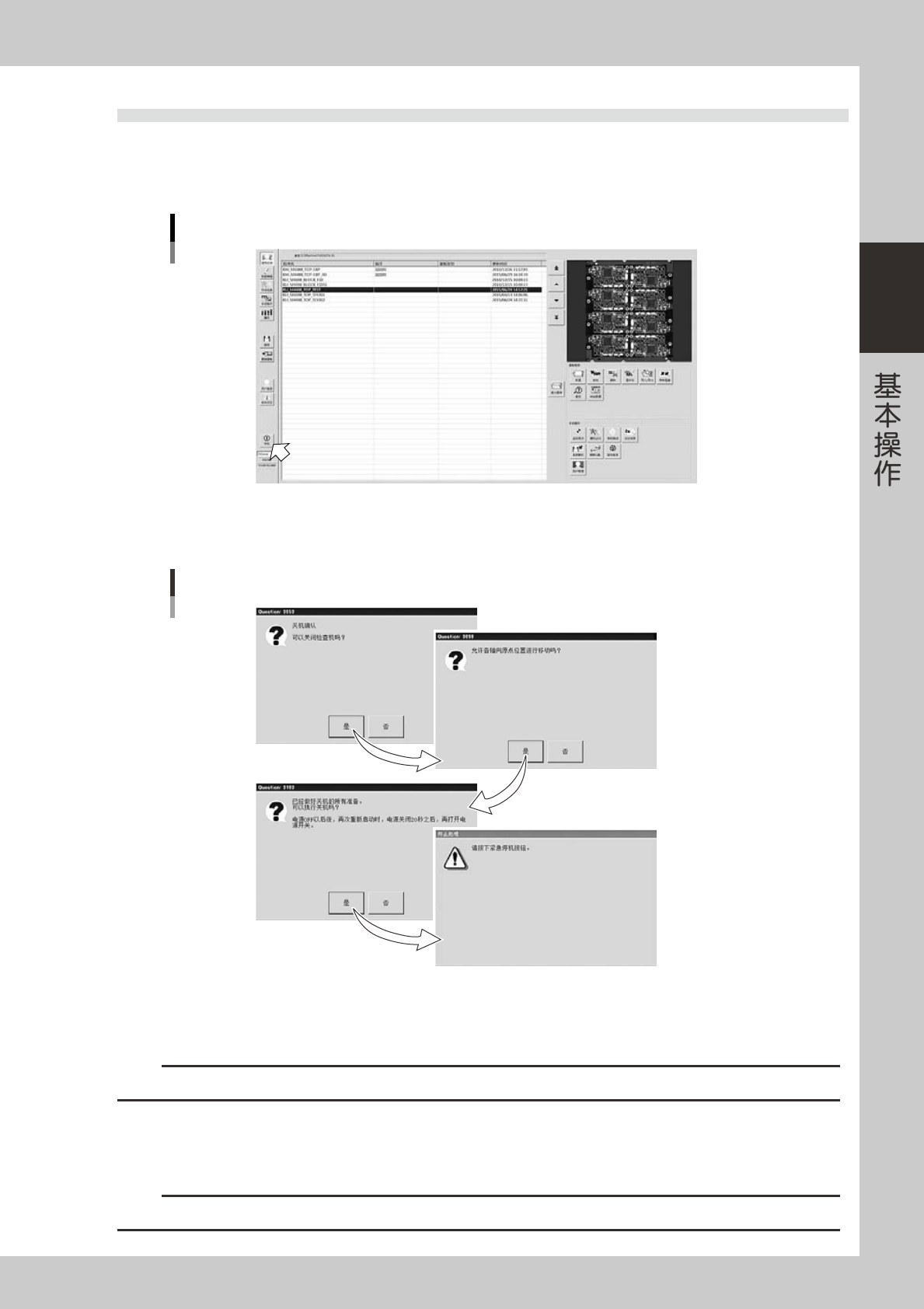 第 3 章 日常作业 本章,介绍操作人员使用已创建的检查程序进行日常作业的方法。建议在理解“第 2 章基本操作”的基础上,阅读 本章内容。需要创建或更改检查程序时,请参阅别册《程序设计手册》的“第 2 章检查程序的创建” 。 目录 1. 概要 3- 1 2. 暖机运行 3- 2 3. 基板的选择 3- 3 4. 传送装置的调节 3- 4