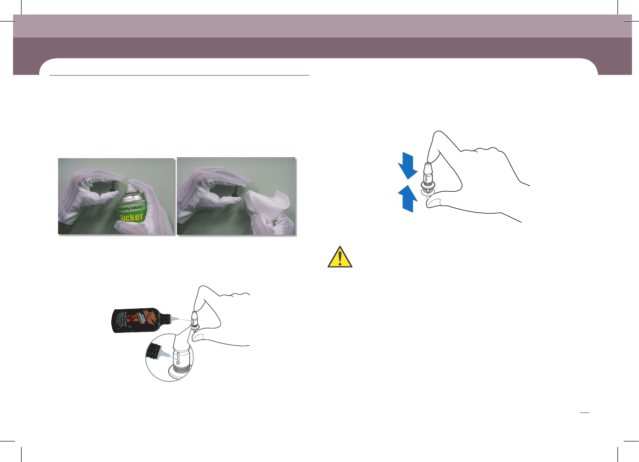 - 세정액 분사 약 1분 경과 후 깨끗한 천을 사용하여 노즐외관을 닦아내기