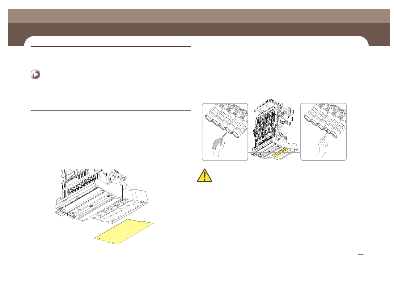 Chapte r 4 주간 점검 SM471 M aintenance Handbook 39 Cha pter 4 Fas t & Fl ex ibl e Chip Sho ot er 주간 점검 공기분사기, 알코올, 극세사 천 1. “Front X Frmae의 전면이동 (Page 9)”과 “R ear X Fr ame의 후면이동 (Page 12)”을 참조하여 각각의 X Fr ame을 양쪽 끝으로 이동 …
