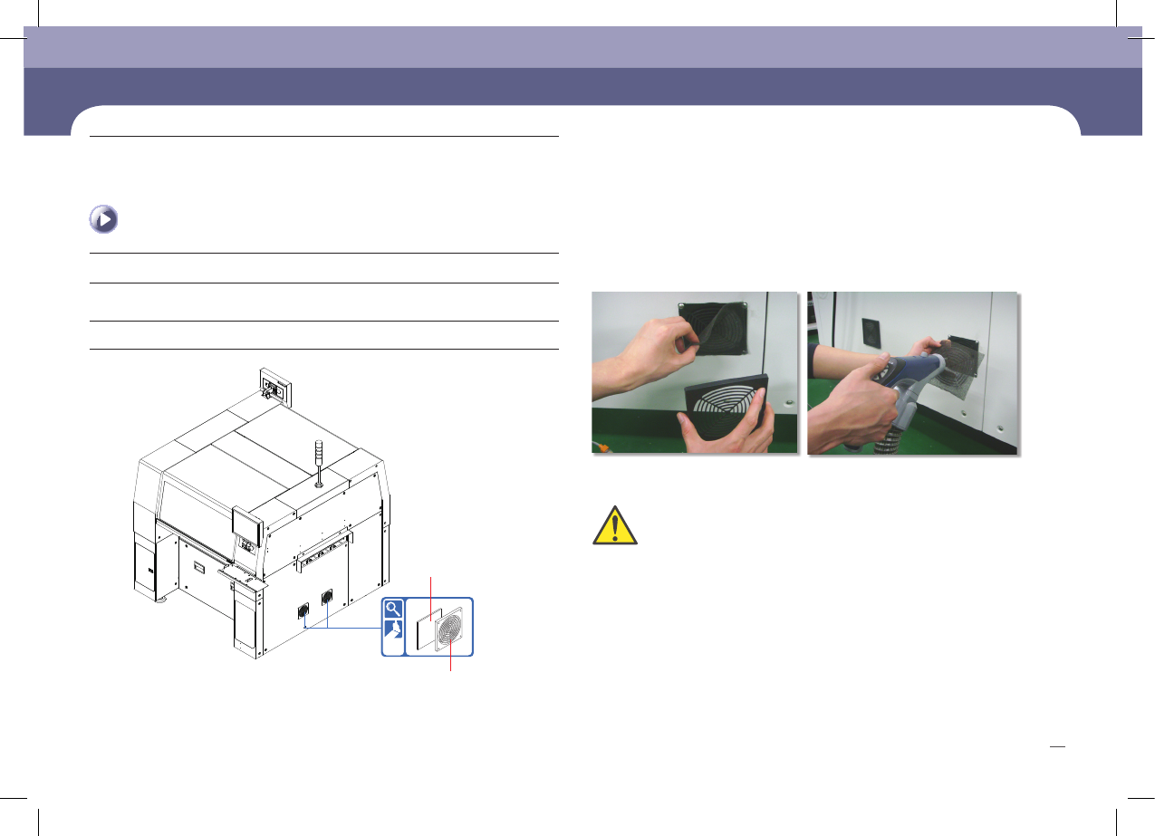 Chapte r 5 월간 점검 SM471 M aintenance Handbook 53 Cha pter 5 Fas t & Fl ex ibl e Chip Sho ot er 월간 점검 렌치, 진공청소기, 십자형(+)드라이버 Control Rack Cooling Fan 점검 및 청소 유 지보 수 도 구 조치 3. Control Rack Assembly 내부 Fan을 진공청소기로 청소 1. “…