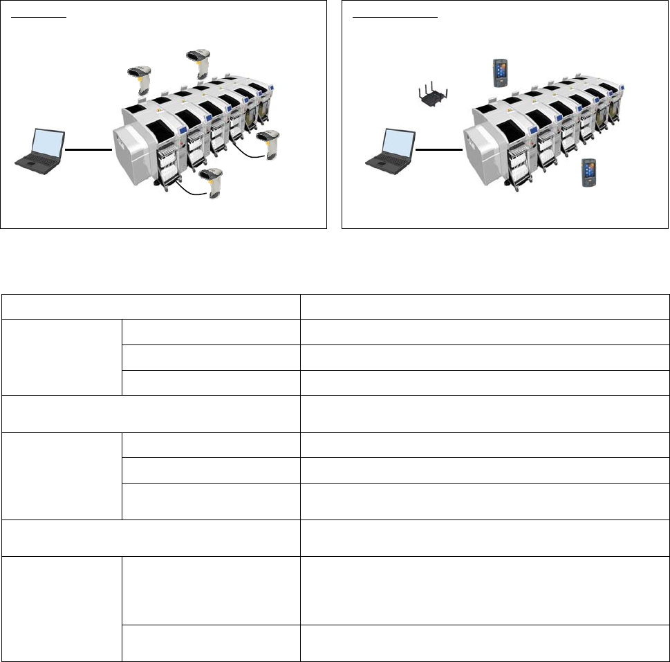 NPM-D3 2014.0428 - 61 - 5. 系统软件 5.1 元件校对 防止元件错误设置。 如果错误安装了与设备中下载的生 产数据不相符的元件, 设备的连锁功能将会启动, 自动设定 为不能继续生产的状态。 根据用户运用状态, 条形码读取顺序和条形码的定义都可 以进行更改, 设定为用户自定义。 扫描器主体请选择有线扫描器或者无 线扫描器 (PDA) 。另外,使用料架自由配置功能时,需 要本选购件。 ■ 系统构成图 ※ 有线扫描器…
