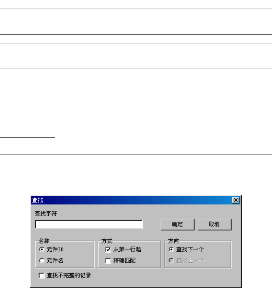 z 指定[不完整的记录]为查找条件时,不能选择[元件 ID]、[元件名]、[精确匹配] 。