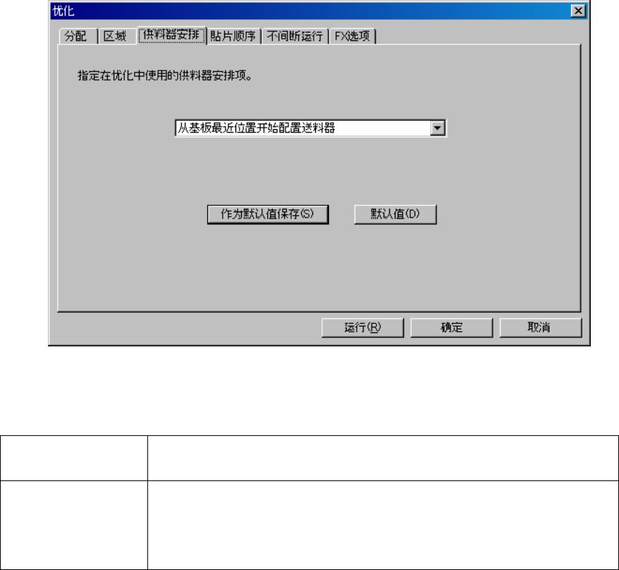 在[供料器安排]选项里,可选择设定送料器的优化配置。