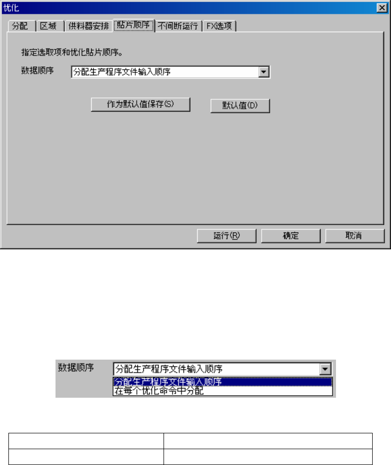 在每个优化命令中分配 以优化顺序为贴片数据的输入顺序。