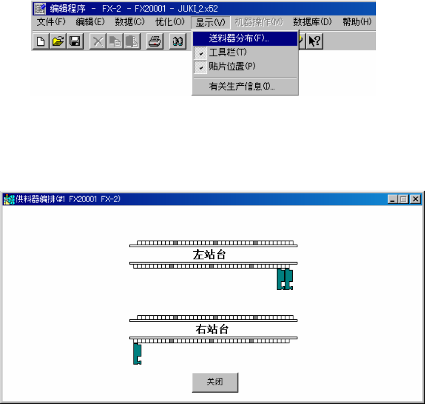 在菜单中选择[显示(V)]→[送料器分布]后,以图像形式显示各站台(即工位,