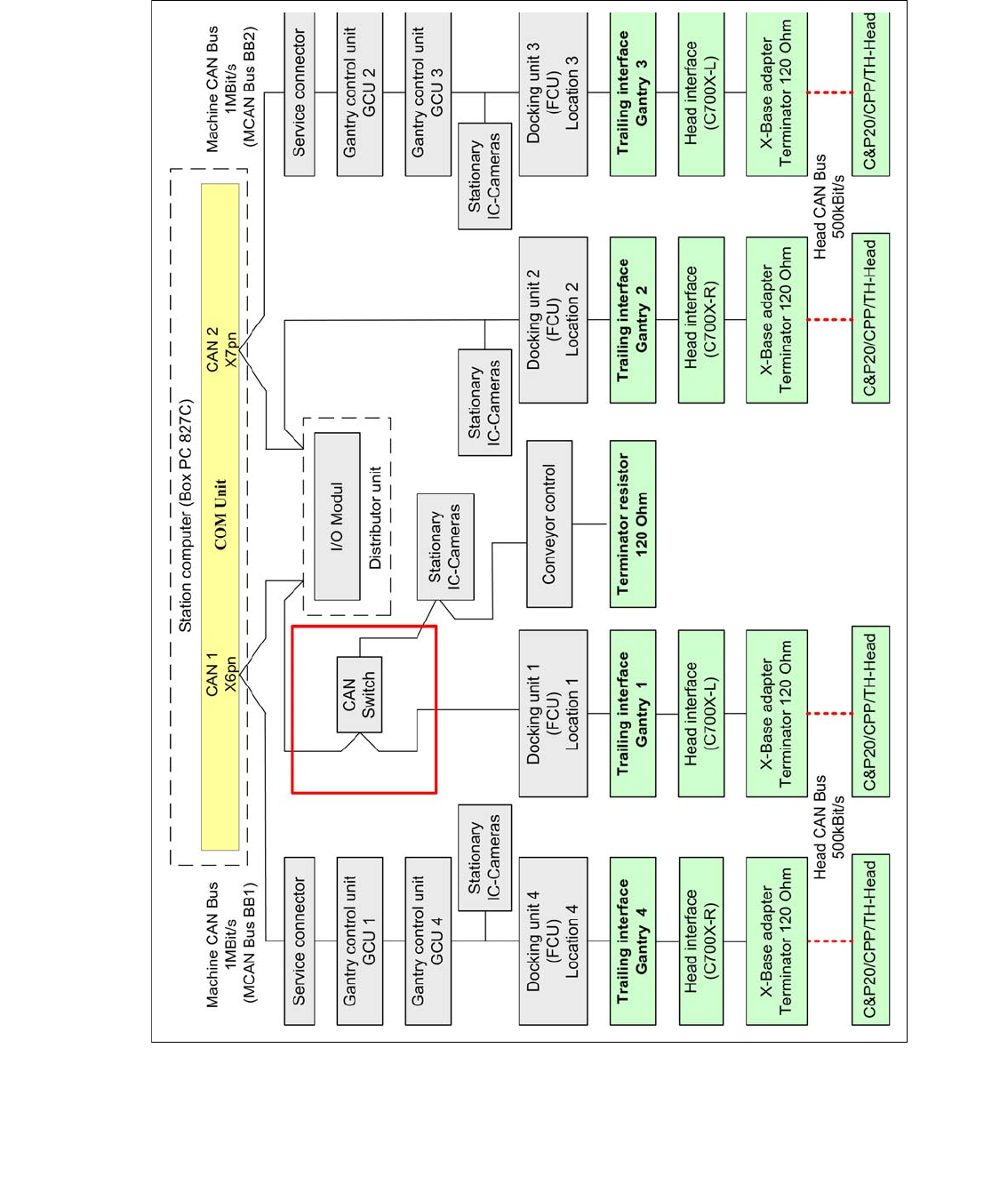 that occur behind the CAN switch. This affects the conveyor controller and stationary camera sub-