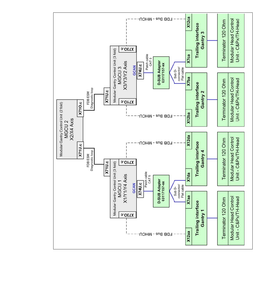 (MGCU´s/) and the Modular Head Control Units (MHCU‘s) for gantries in one placement area (e.g.