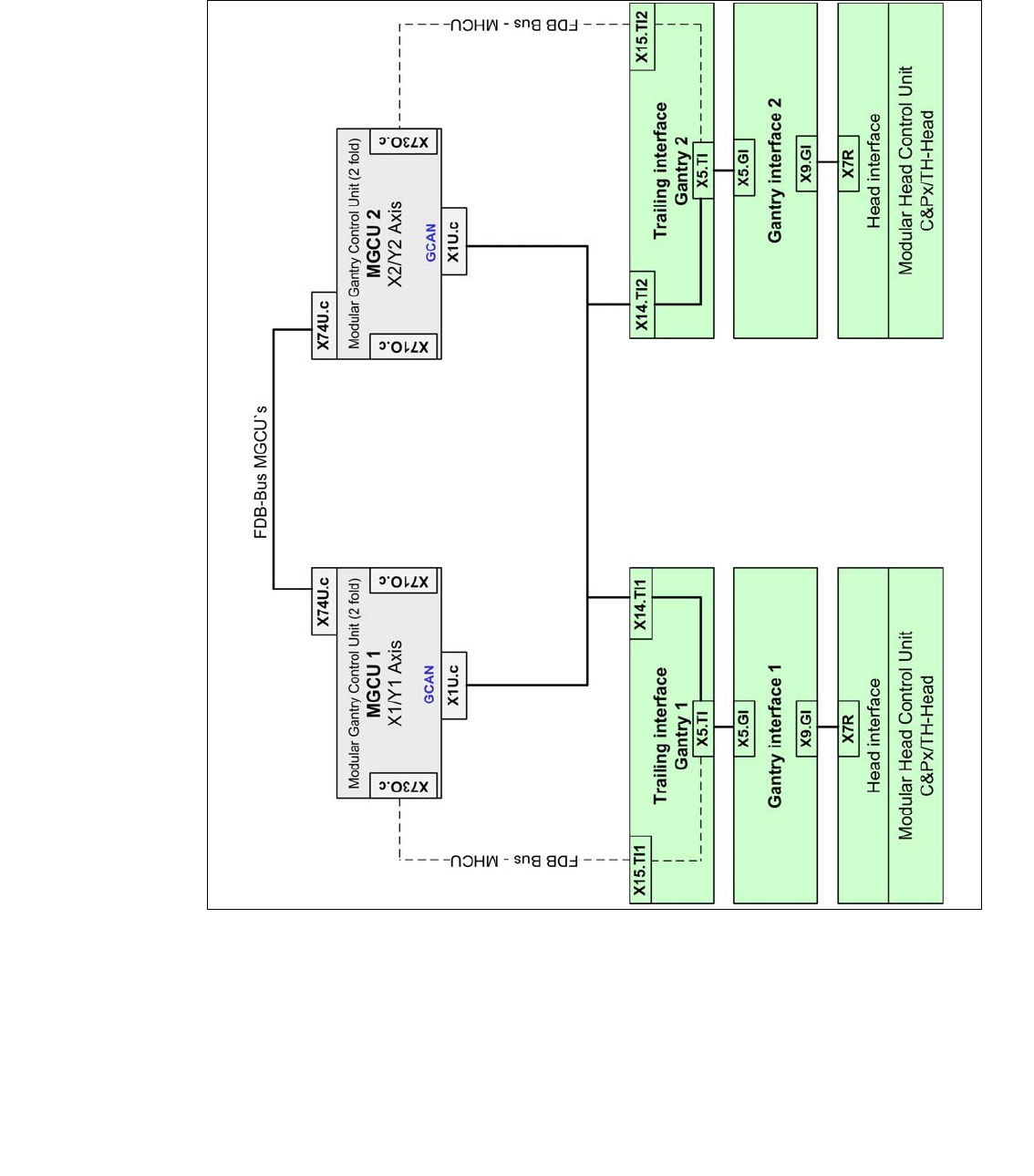 The GCAN-Bus is responsible for the communication between the Modular Gantry Control Unit‘s