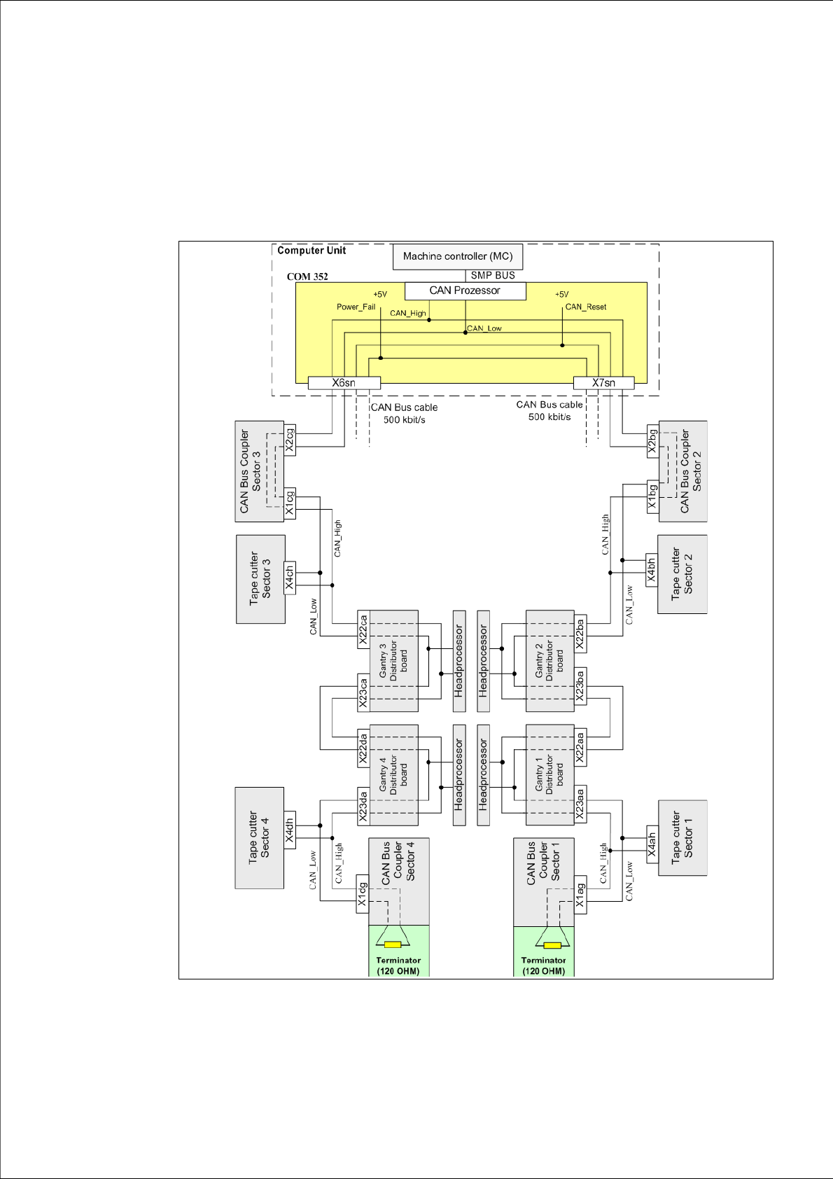 1 - 37 Edition 10/2 018 SIPLACE CAN Bus 37 4 CAN Bus Operation Diagrams 4.1 HS 50 / HS 60 CAN Bus 500kBit Fig. 4.1 - 1 CAN Bus structure HS50/60 with connector desig nations