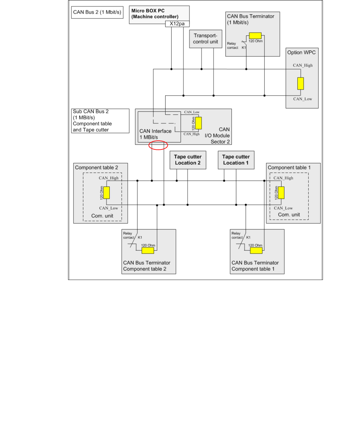 In the Fig. 4.10 - 4 for the component and tape cutter CAN Bus 2, there are four terminators in the