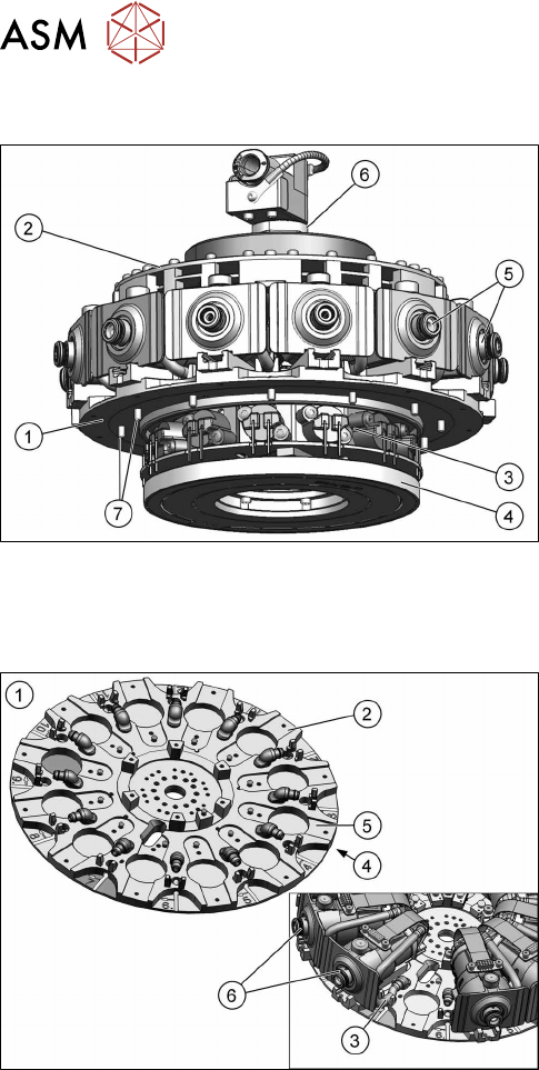2 Modul-Übersicht 2.1 CPP-Kopf Serviceanleitung SIPLACE Multistar (CPP / CPP M) 02/2018 19 2.1.5 Haltekreis, Drehverschraubung und Schalldämpfer Übersicht Abb.10: Drehverschraubung und Haltekreis mit zweiteiligem Schall…