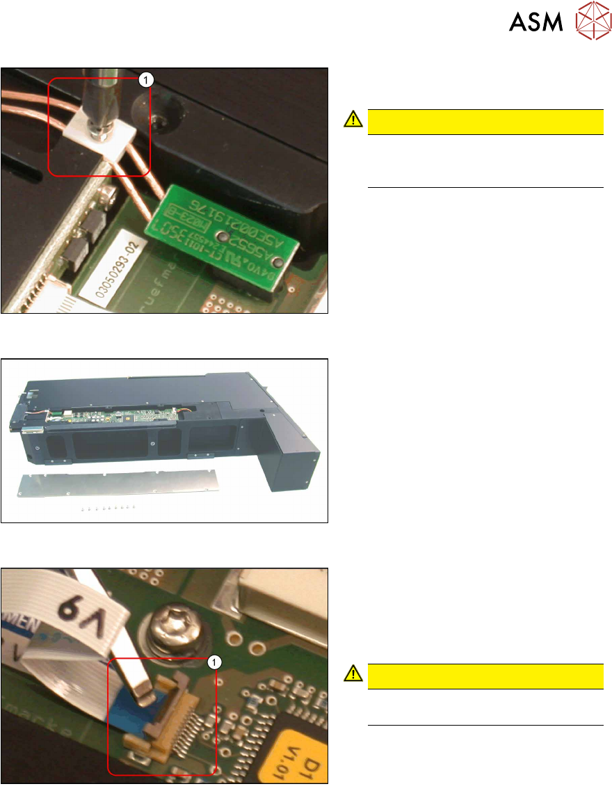4 Service Work 4.2 Replacing Spare Parts 66 Service Manual SIPLACE LDU-X Linear Dipping Unit 11/2017 4.2.29.12 Removing the EDIF Unit ► Loosen the screw (1) fastening the cable clamp on the two cables to the EDIF and re…