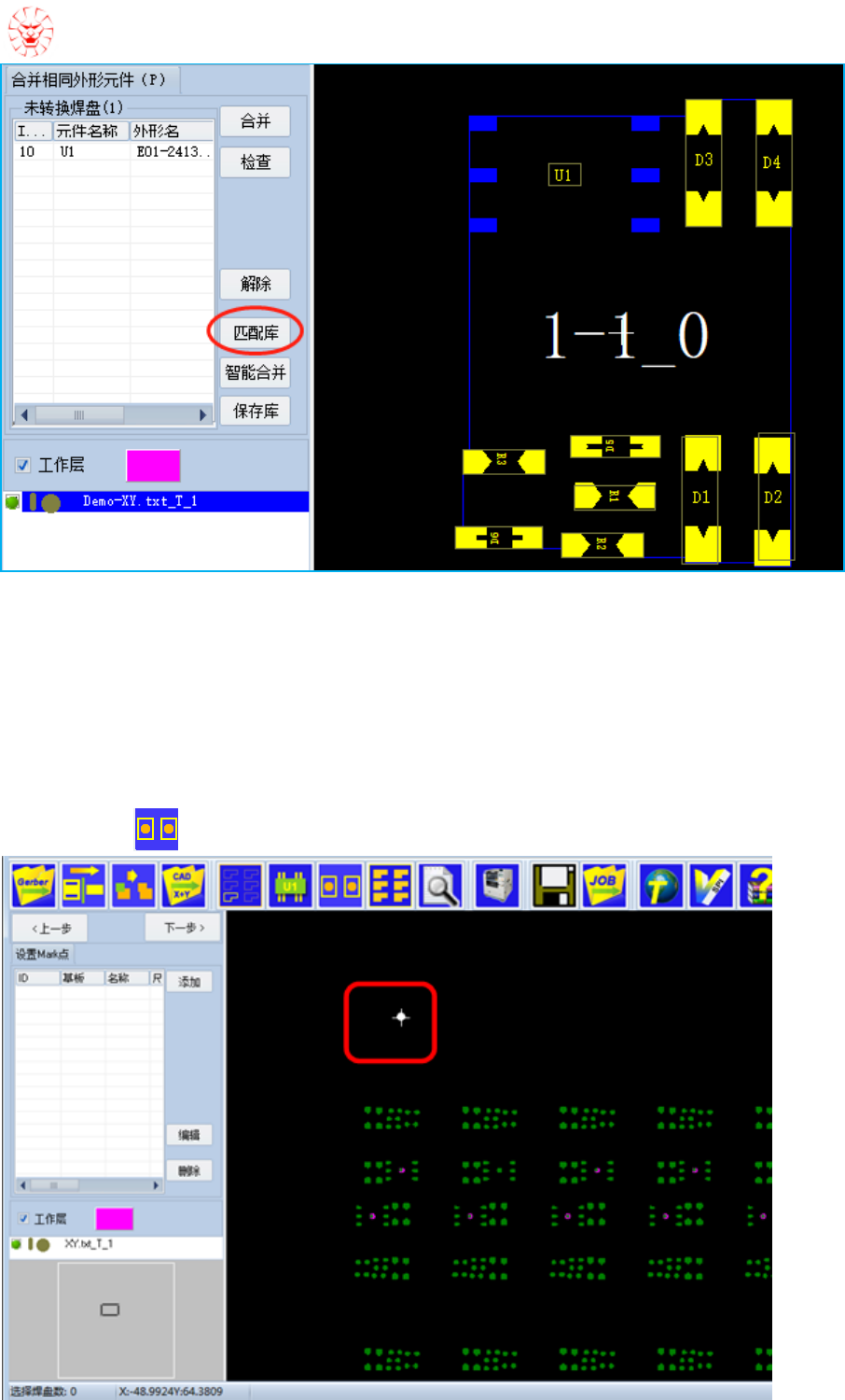 建议优先使用"匹配库"功能,对于未合并的再手动合并,完成后再保存到库中,下一个板子"匹配库"时