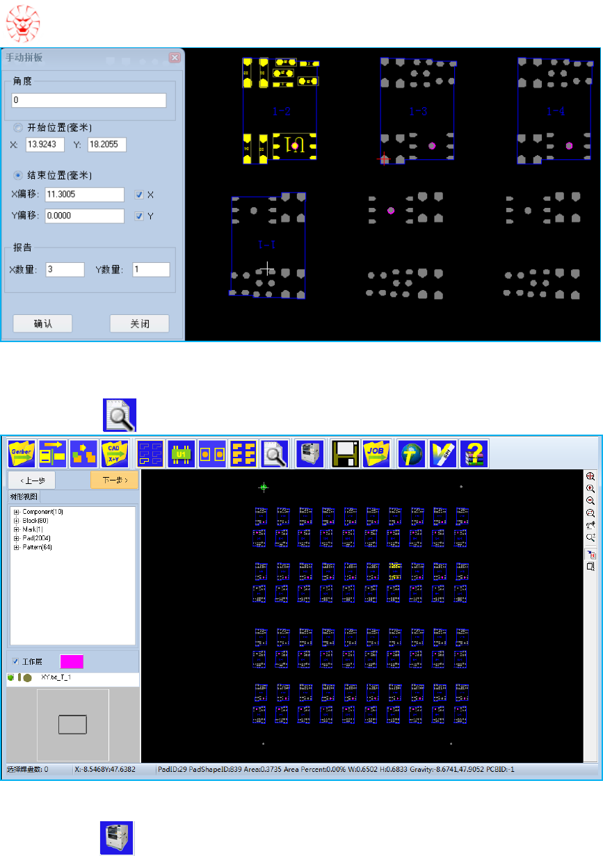 Holl y Data Managem ent Studio 22 / 26 点选红色区域 " 结束 位置 " ,在其他单 板的相应位置设置 结束点; 修改 X 数量, 3 表示在 X 轴方向制作 3 块拼板; 点击确认。