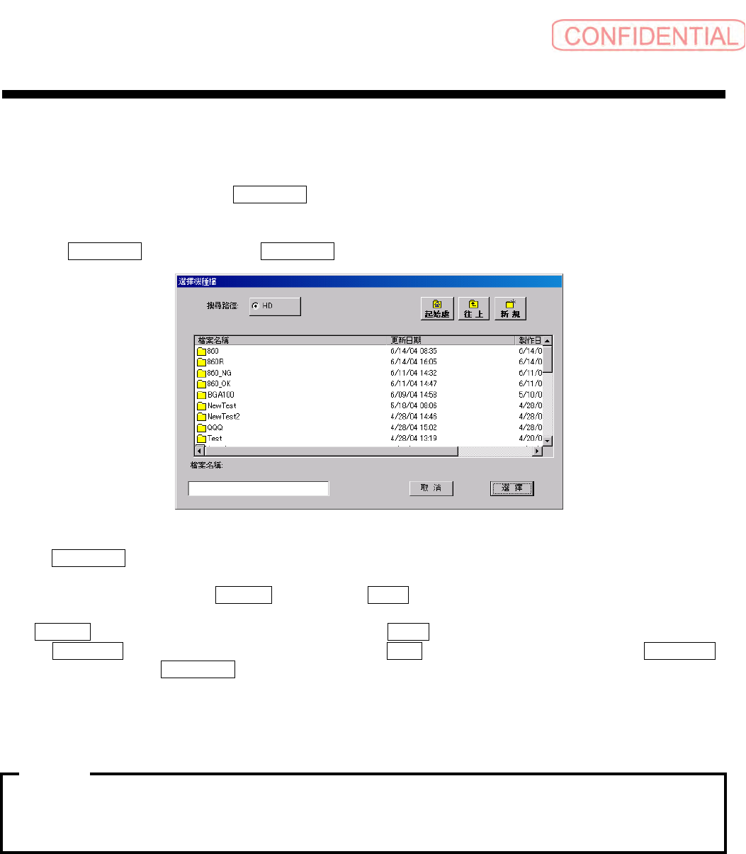 操作篇 操作篇 操作篇 操作篇 4. 自动生产 SI-F130 4-35 4.4.2 生产频率高的机种文件 生产频率高的机种文件 生产频率高的机种文件 生产频率高的机种文件 4.4.2. 1 登录生产频率高的机种文 件 [ 操作功能 ] 将生产频率高的机种 登录在 常用機種 ( 常用机种 ) 中,以便在 短时间内搜寻。 [ 操作顺序 ] 点击 常用機種 ( 常用机种 ) 的 新 檔登錄 ( 新文件登录 ) 钮,会出现以 下对话框。 图 …