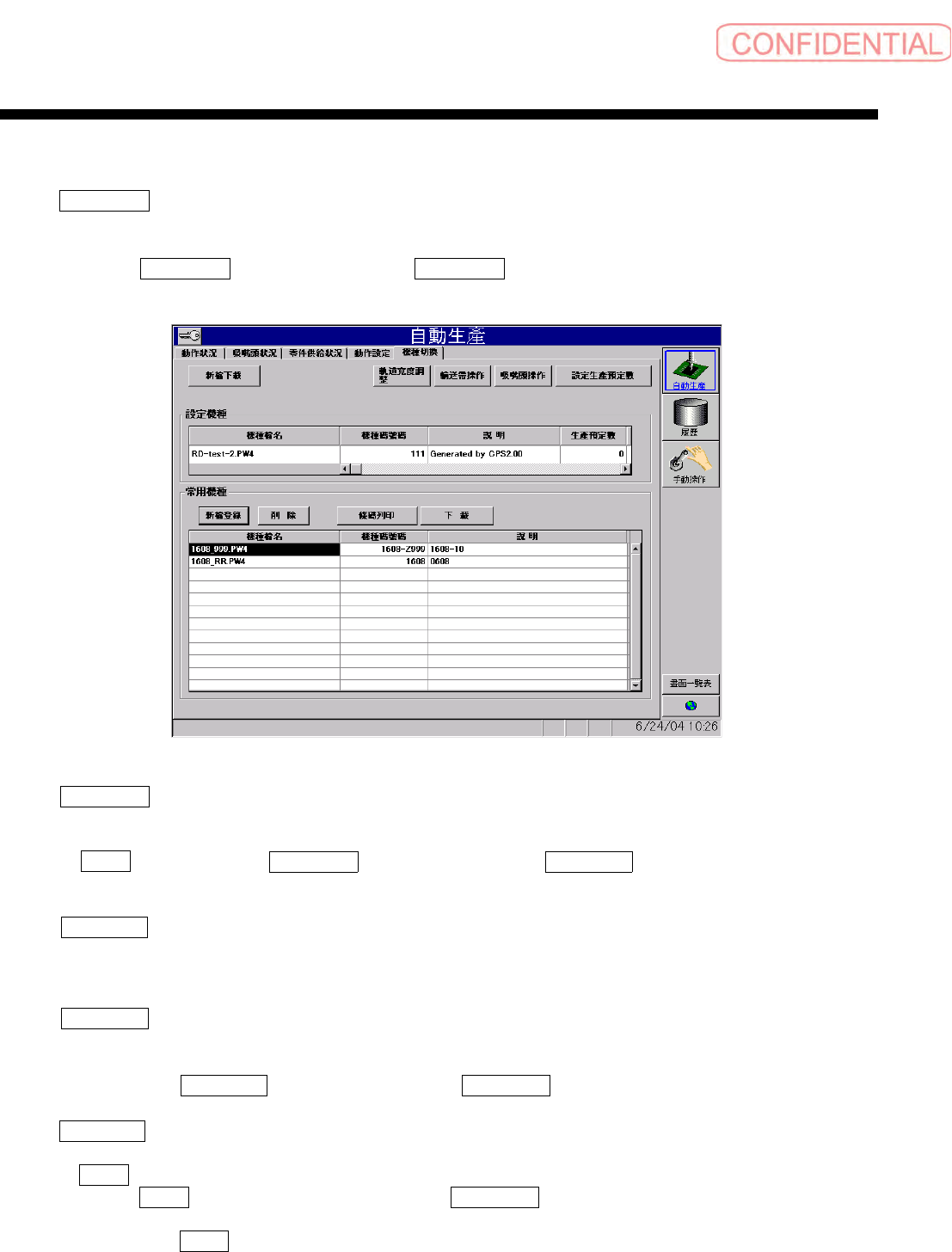 依顺序点击 自動生產 ( 自动生产 ) 菜单→ 機種切換 ( 机种切换 ) 标签,会出现以下的画面。
