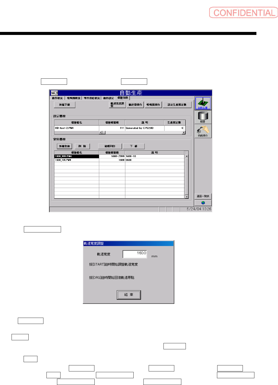 依机种资料的基板尺寸自动调整轨道宽度时,按操作面板的