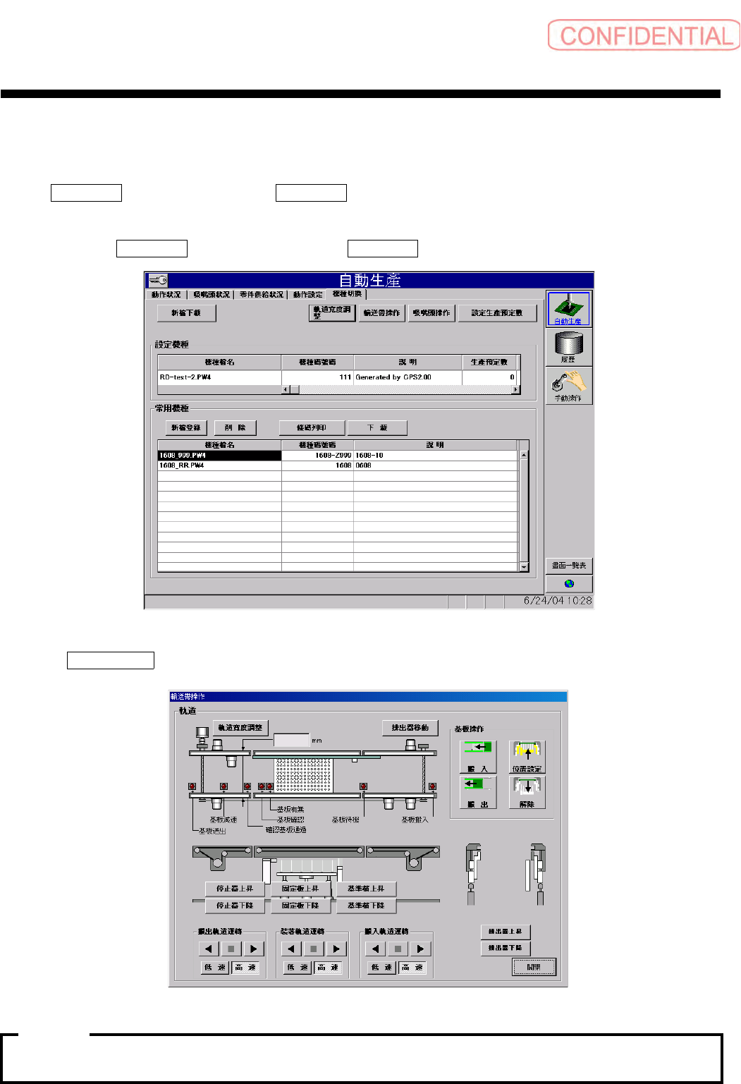 操作篇 4. 自动生产 SI-F130 4-39 4.4.4 输送带操作 [ 操作功能 ] 执行机种切换时的基 板搬入·搬出操作。 与 手動操作 ( 手动操作 ) 菜单的 基板搬送 ( 基板搬送 ) 内容相同。 [ 操作顺序 ] 依顺序点击 自動生產 ( 自动生产 ) 菜单 → 機種切換 ( 机种切换 ) 标签,会出 现以下的画面。 图 4.4.4- 1 自動生產-機 種切換 ( 自动生产 -机种切换 ) 画面 点击 輸送帶操作 ( 输…