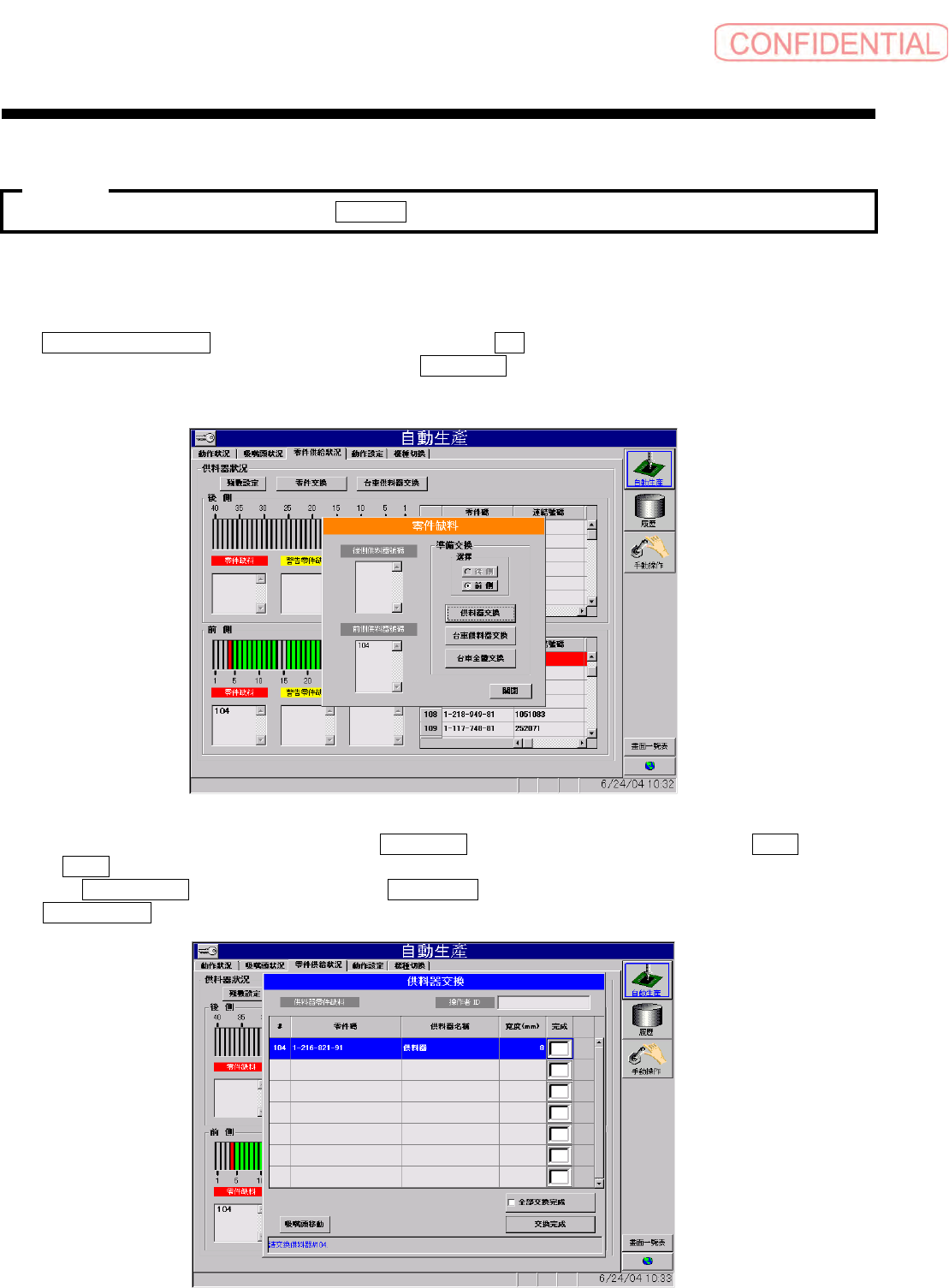 前侧及后侧均有零件缺料的情况,点击 準備交換 ( 准备交换 ) 框的零件交换侧的 前側 ( 前侧 )