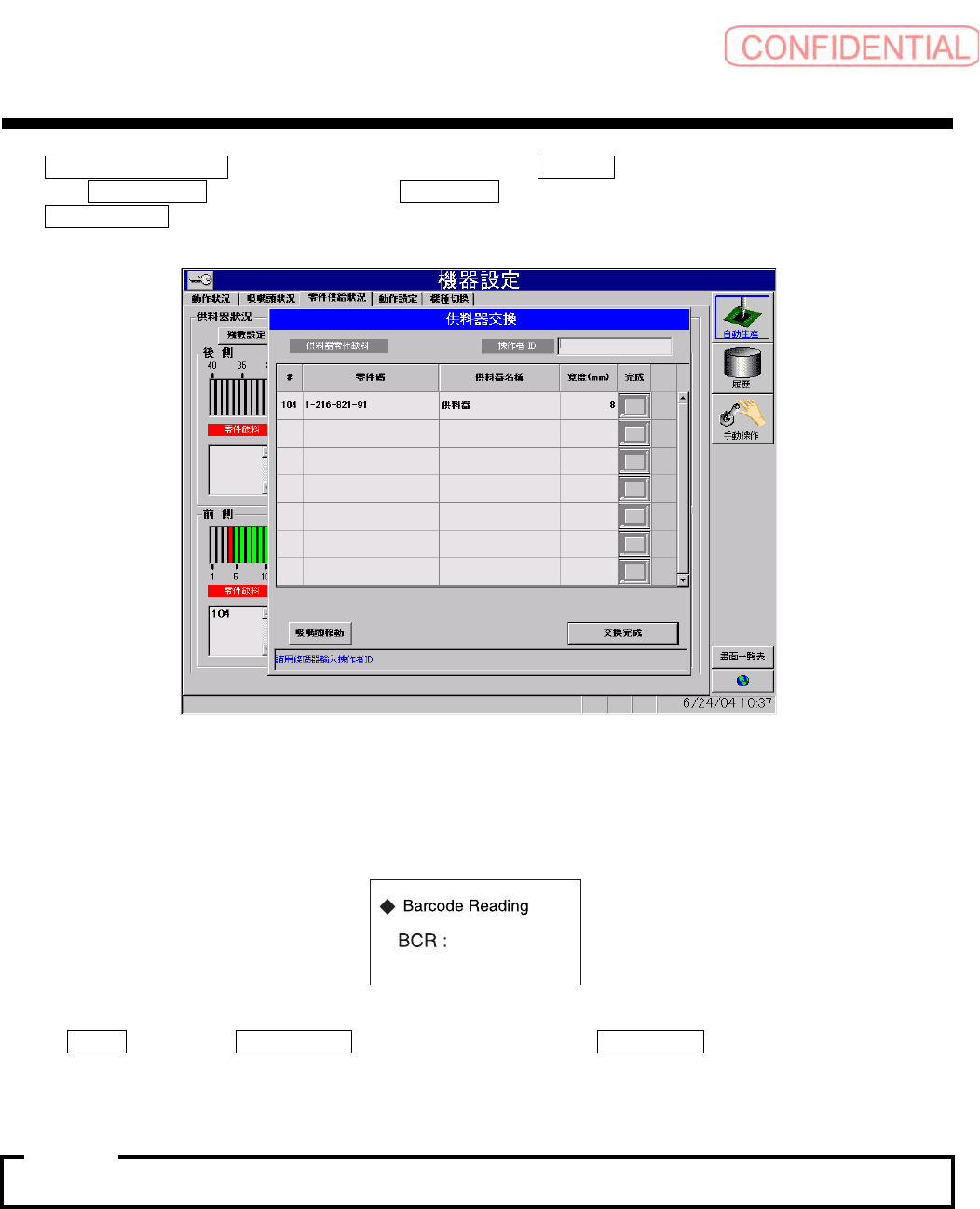 另外,有残留未交换的供料器时,对话框中以红字表示 「有未交換完成之供料器」