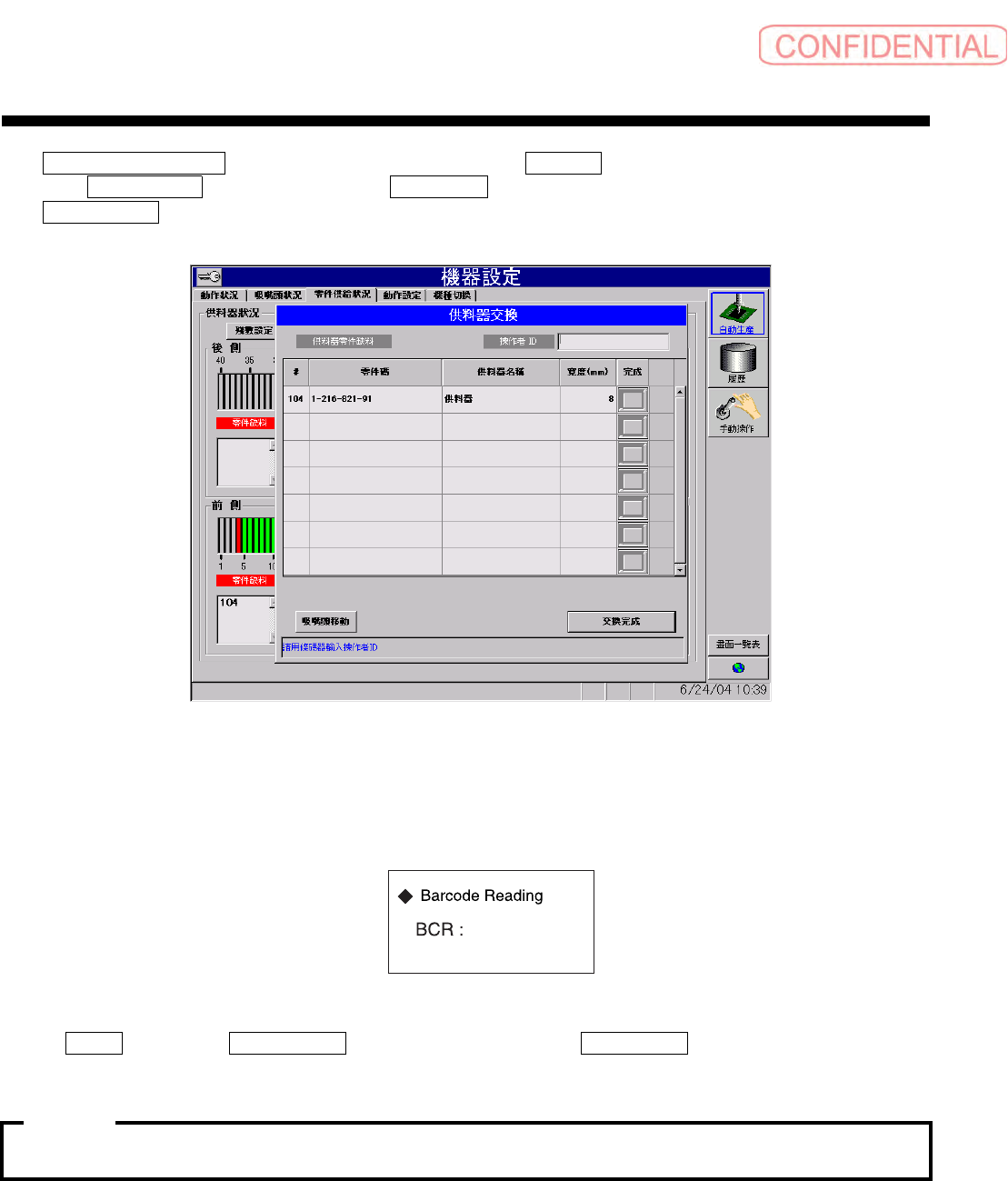 另外,有残留未交换的供料器时,对话框中以红字表示 「有未交換完成之供料器」