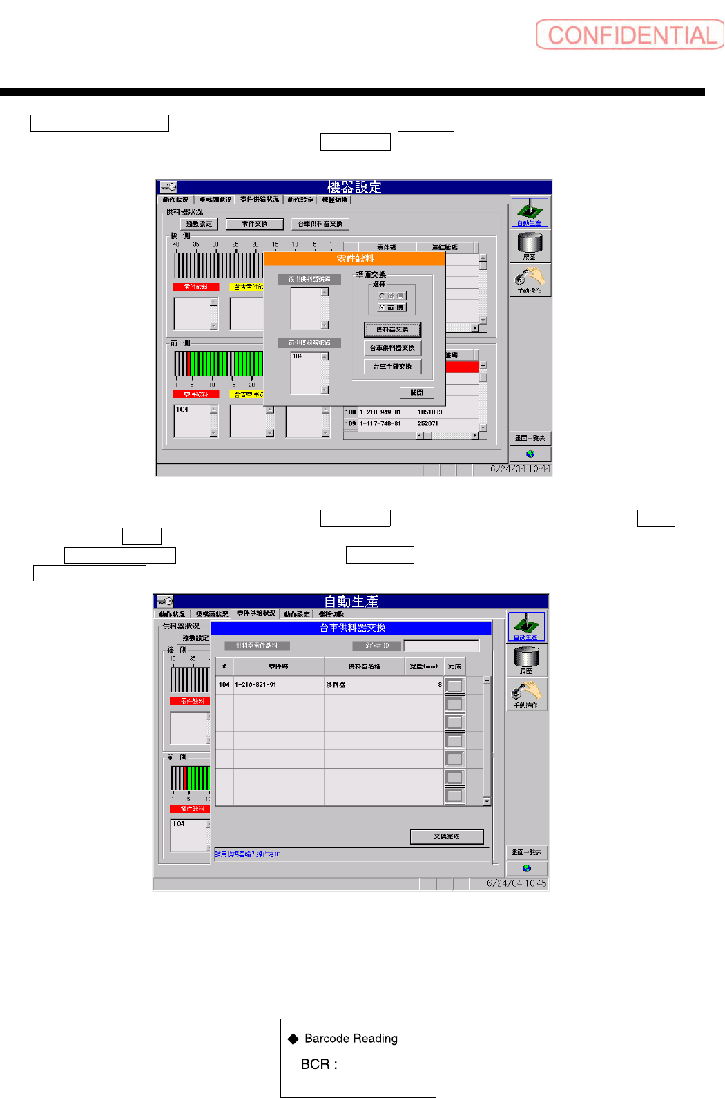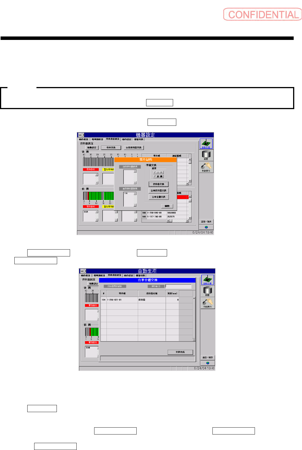 有未交换的供料器时,在对话框中会以红字 「有未交換完畢之供料器」