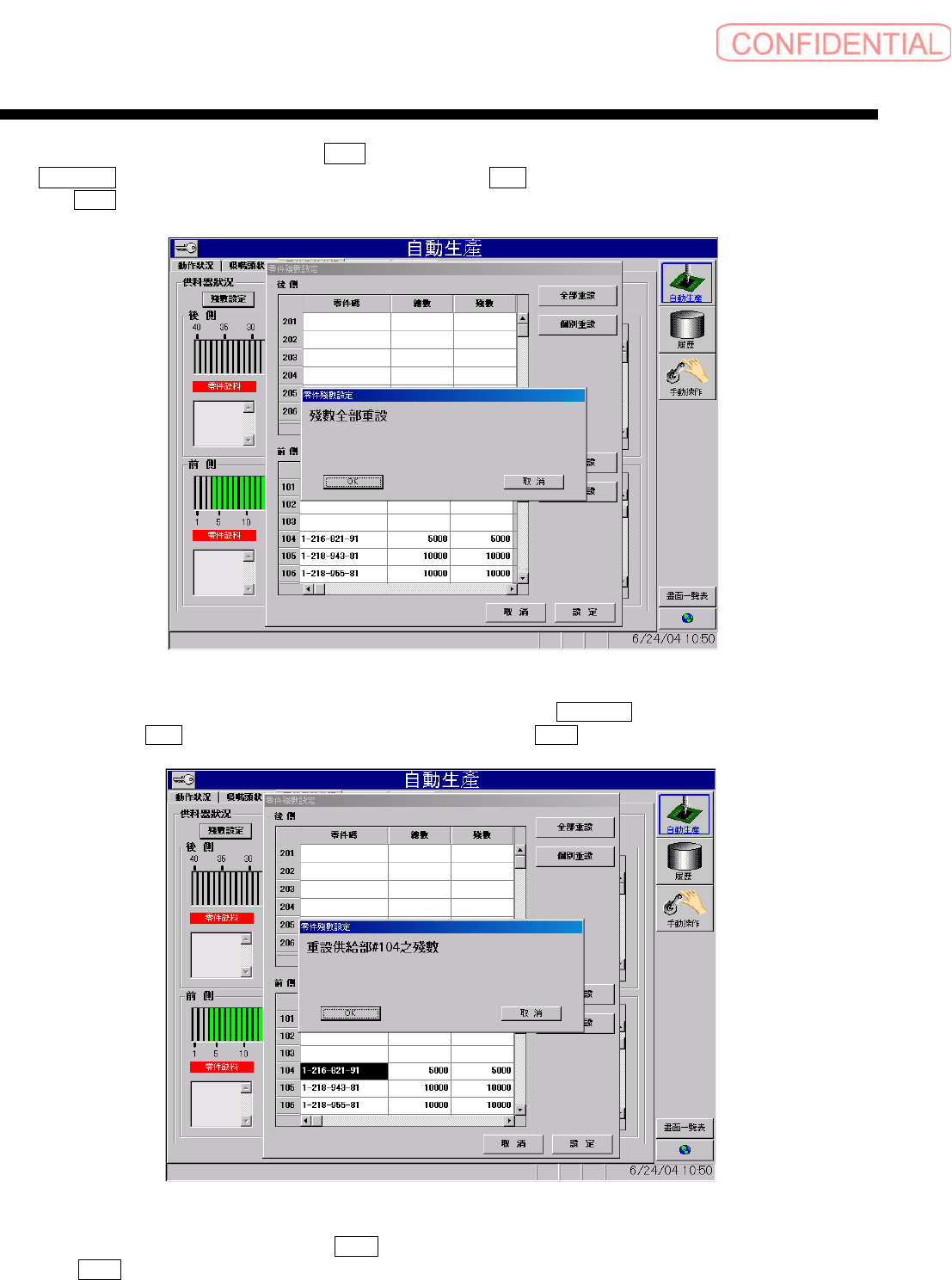 输入各供给部位置的零件残数后,点击 設定 ( 设定 ) 钮 , 设定输入的残数。