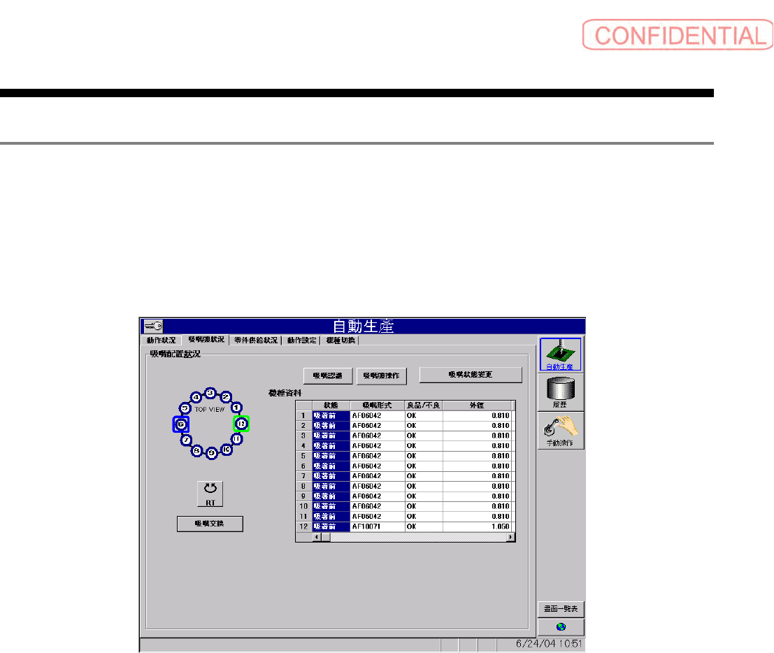 NG 吸嘴)的索引号码以红色表示 , 一般良好的吸嘴 (OK 吸嘴)情形为黑色。