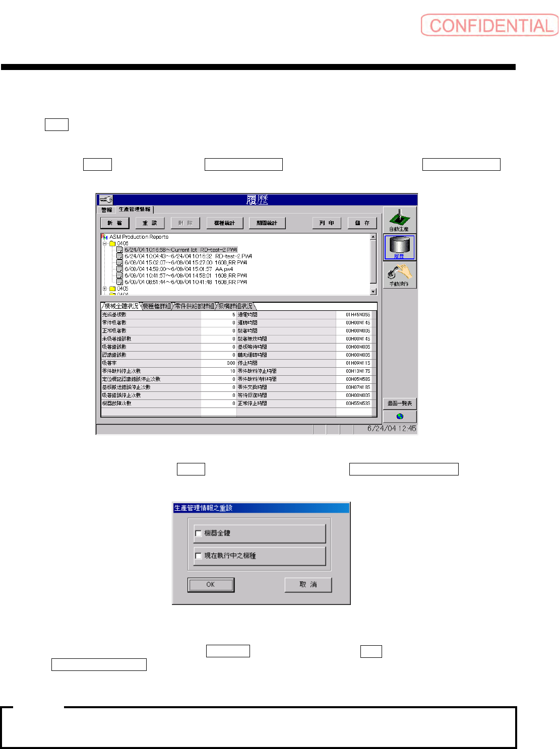 指示 重設 ( 重设 ) 以后的装置的运转状况及各种错误表示 , 包含全部的生产状况。