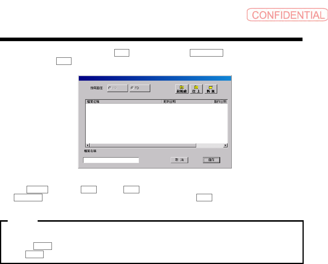再储存表示中的资料至 FD 时,需点击 儲存 ( 储存 ) 钮。因表示出 機種檔選擇 ( 机种文件选择 ) 对话框,请