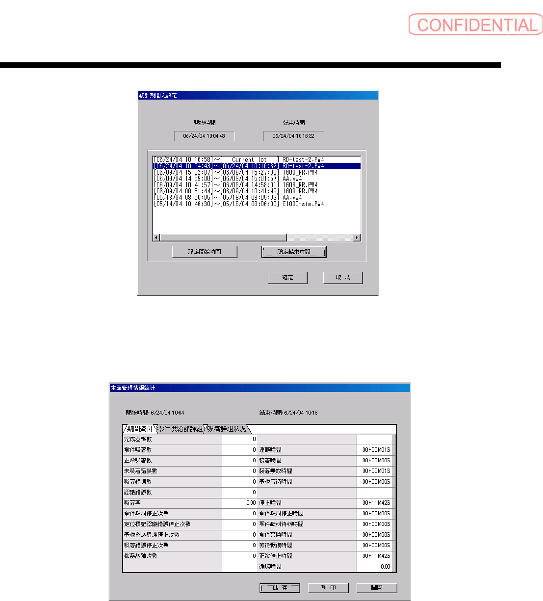 统计期间的设定 ) 对话框。指定期间后,请按 確定 ( 确定 ) 钮。表示出 生產管理情報統計