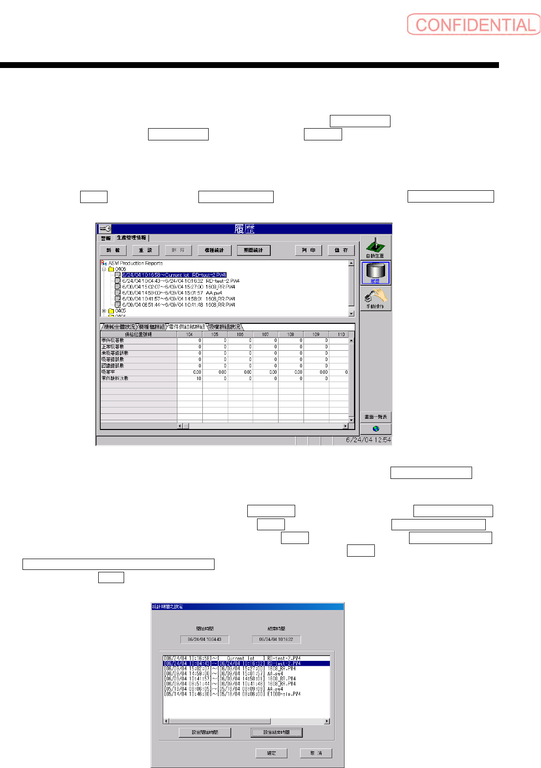 统计期间的设定 ) 对话框。指定期间后,请按 確定 ( 确定 ) 钮。表示出 生產管理情報統計
