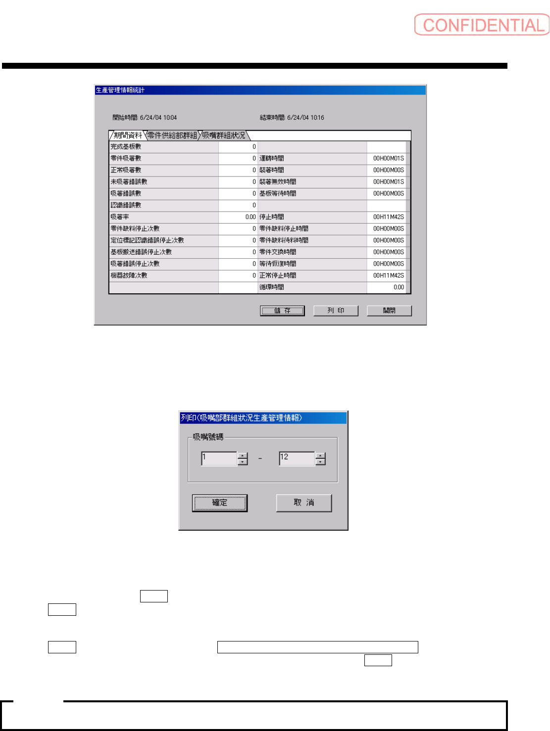 列印 ( 打印 ) 钮 , 会出现上记的 列印 ( 吸嘴部群組狀況生產管理情報 ) ( 打印 ( 吸嘴部