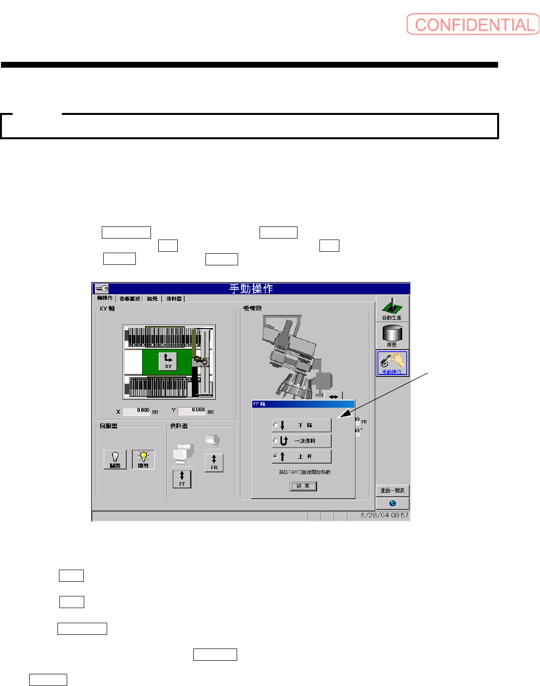 [2] 操作前侧供料器时点击 FF 钮,操作后侧供料器时点击 FR 钮 。