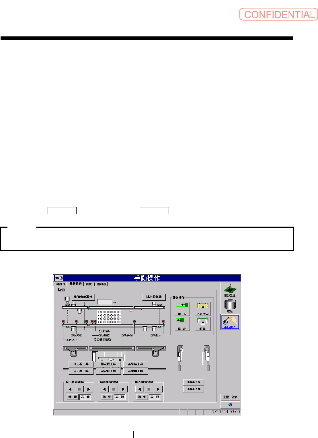 依顺序点击 手動操作 ( 手动操作 ) 画面 → 基板搬送 ( 基板搬送 ) 子目绿。会表示以下的画面。