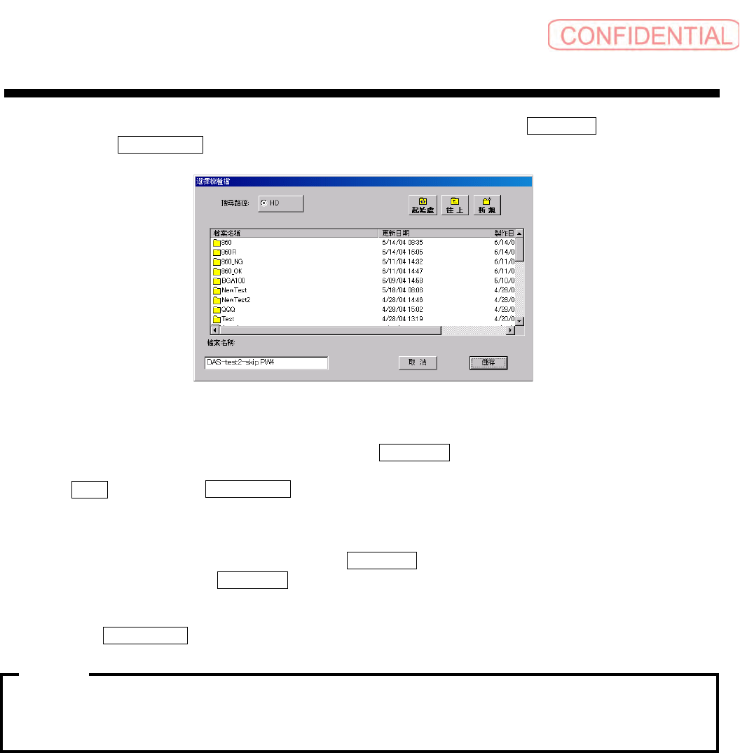操作篇 操作篇 操作篇 操作篇 6. 资料编集 SI-F130 6-39 仅开启现在的机种文 件与现在表示的名字,以不 同名字储存时,点击 另存新檔 ( 另存新文件 ) 钮 , 会出现 選擇機種檔 ( 选择机种文件 ) 对话框。 图 6.2. 1-15 選擇機種檔 ( 选择机种 文件 ) 对话框 以新的文件名称储存 时,由键盘输入储存名称于 檔案名稱 ( 文件名称 ) 文本框中。 点击 儲存 ( 储存 ) 钮, 選擇機種檔 ( 选择机种…
