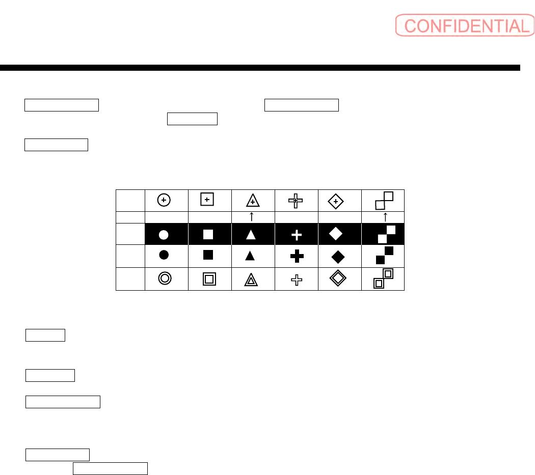 操作篇 操作篇 操作篇 操作篇 6. 资料编集 SI-F130 6-59 [ 画面说明 ] 定位標記形式 ( 定位标记形式 ) : 将基板上的 定位標記形式 ( 定位标记形式 ) 由列表的第一行 一个一个全部输入。 三角的 定位標記 ( 定位标记 ) 方向以不同的标 记输入。 顏色‧形狀 ( 颜色 · 形状 ) : 定位标记有以下的 种类。 判定值 ( 判定值 ) 值是 1 ~ 1000 (100 0 比较严格 ) 形状的一致指数。 照…