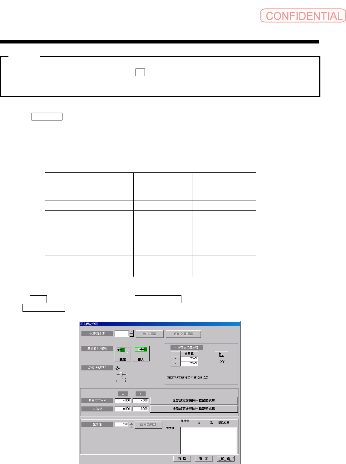 ·动作停止的步骤途中,请不要执行不良标记教示对话框的表示。会发生系统错误。
