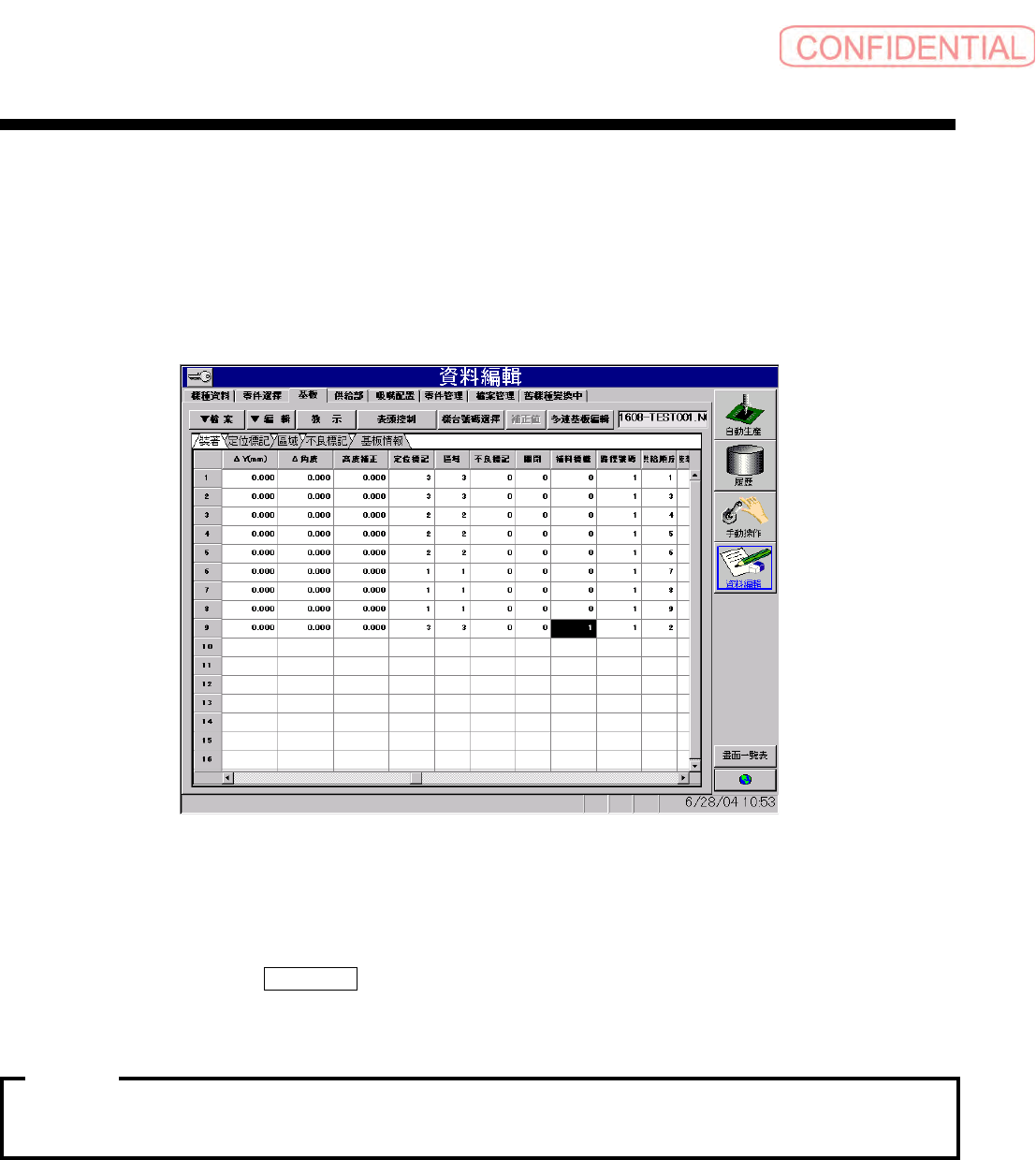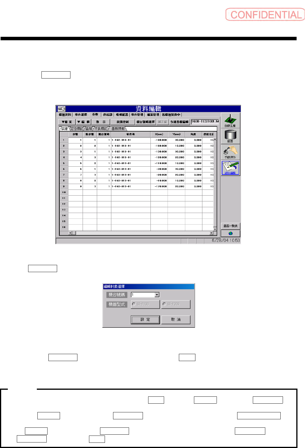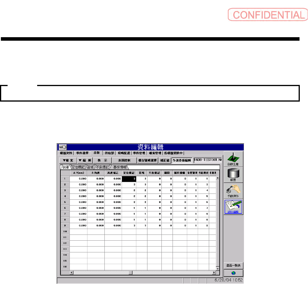 操作篇 操作篇 操作篇 操作篇 6. 资料编集 6-82 SI-F130 (6) 补料标帜功能的输入 [ 操作功能 ] [ 操作顺序 ] 图 6.4.5- 1 1 資料編輯 —基板 ( 资料编辑-基 板 ) 画面 …