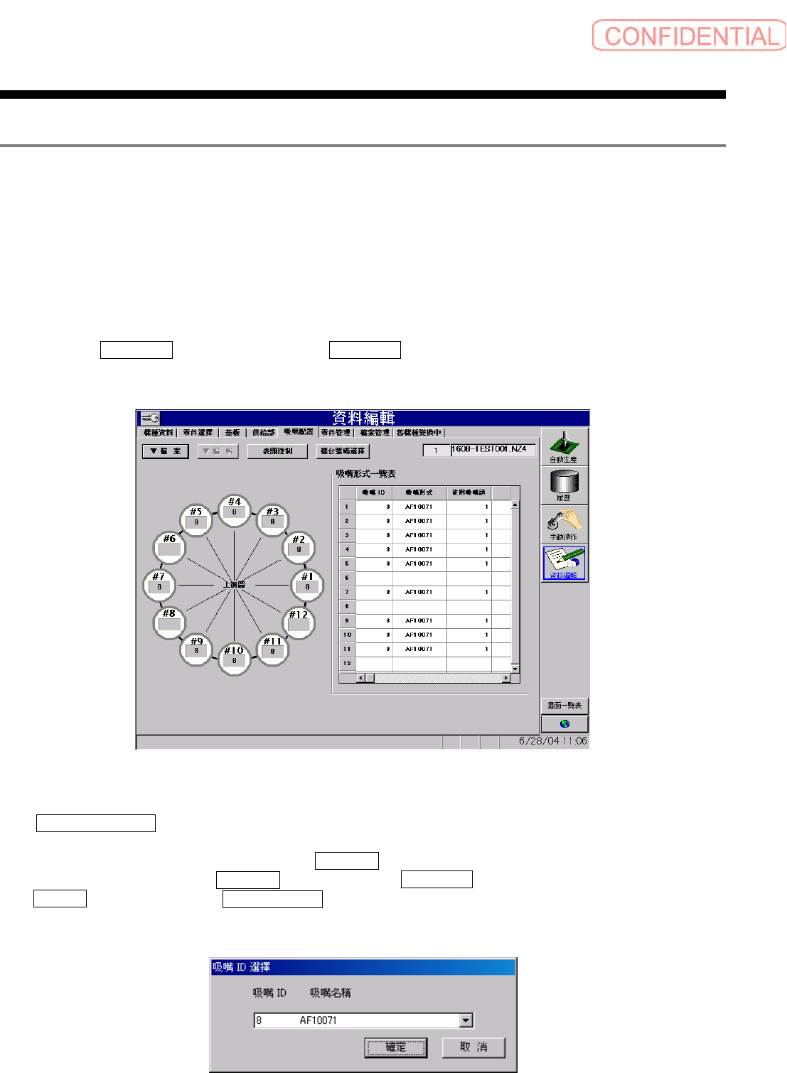 点击指定 資料編輯 ( 资料编辑 ) 菜单的 吸嘴配置 ( 吸嘴配置 ),会出现以下的画面。