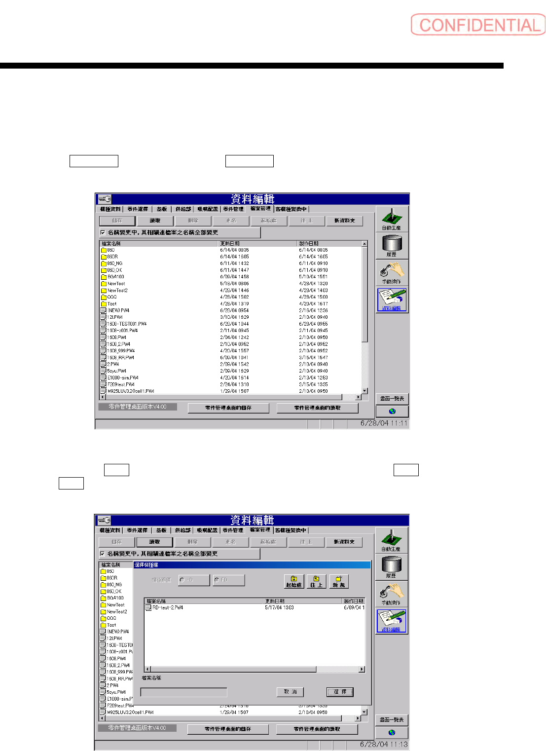 对于制作机种文件及零件管理的名称变更或删除及从 FD 或伺服处存储或读取等, 执行机种文件的管理。对于