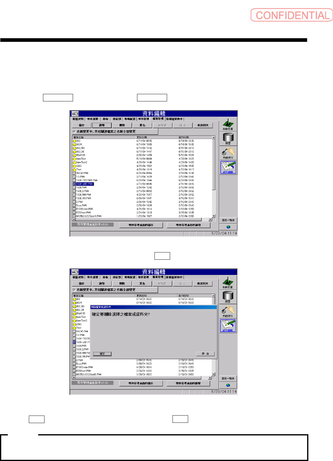 点击 確定 ( 确定 ) 钮,删除选择的机种文件。点击 取消 ( 取消 ) 钮后,中断删除。