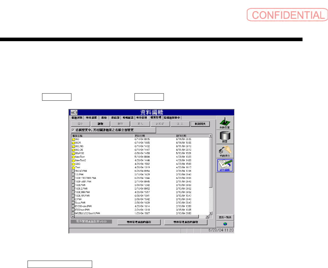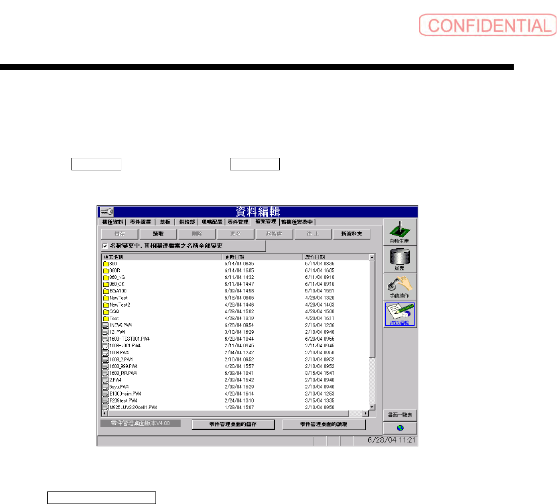 点击指定 資料編輯 ( 资料编辑 ) 菜单的 檔案管理 ( 文件管理 ),会出现以下的画面。