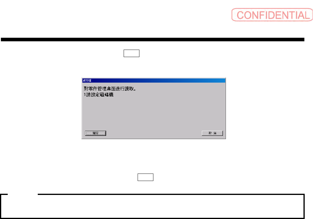 显示以下对话框,请设置 FD,点击 確定 ( 确定 ) 钮。会从 FD 读取零件管理表。