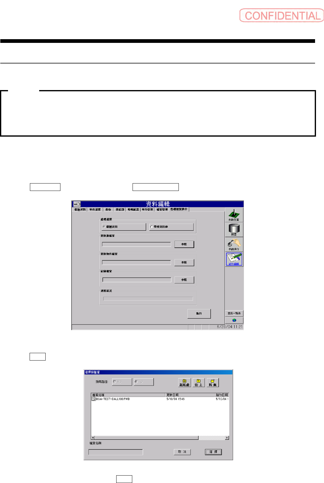 内容确认后,点击 OK 钮, 紀錄檔案 ( 纪录文件 ) 对话框消失,返回到 舊機種變換中 ( 旧机种