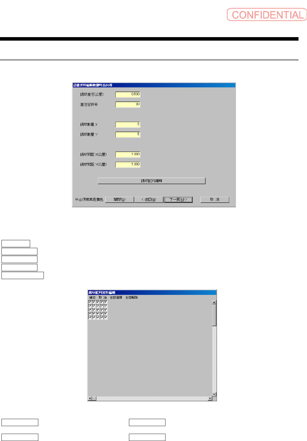 錫球配列編輯 ( 锡球配列编辑 ):显示锡球配列编辑画面。