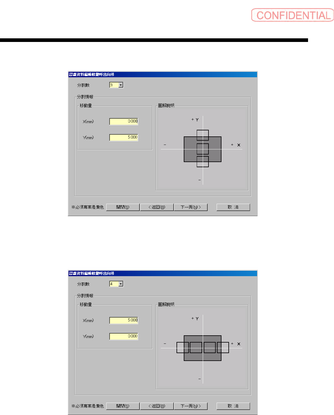 移動量 X、 Y ( 移动量 X、 Y): 2 分割及 3 分割时,二者中有一者是 0。