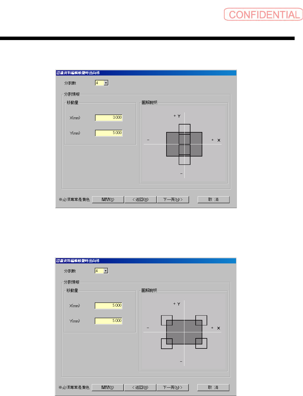零件认识资料制作篇 零件认识资料制作篇 零件认识资料制作篇 零件认识资料制作篇 第 1 章 操作 SI-F130/SI-F 209 1-13 4 分割时 Y 坐标输入 时 图 2.4- 7 4 分割时 Y 坐标输入 4 分割时 XY 坐标输入时 图 2.4-8 4 分割时 XY 坐标输入